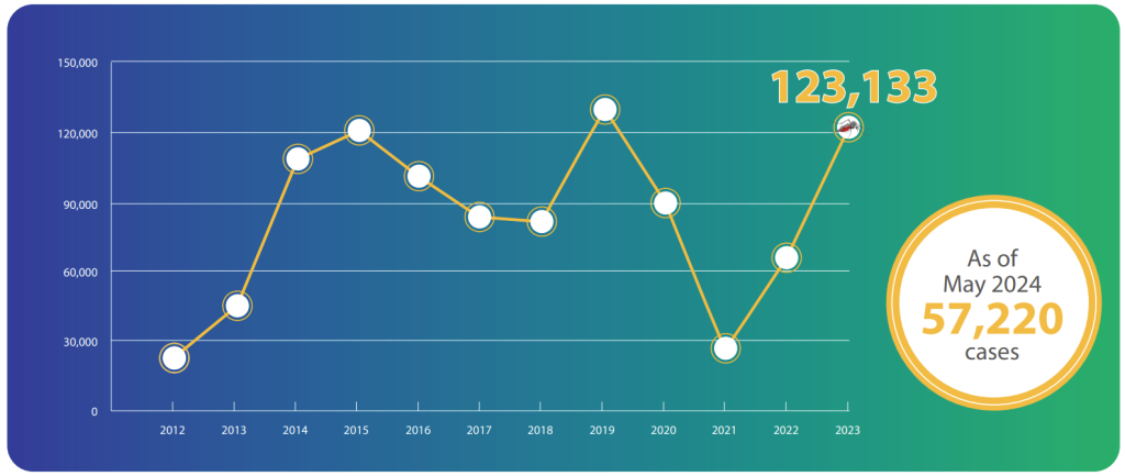Alarmingly, the number of dengue cases has been increasing. Between January and May of this year, cases rose by 34.3% compared to the same period last year.2 In 2023, the World Health Organisation (WHO) reported nearly five million cases worldwide, with over 5,000 deaths, marking a significant increase from previous years.3