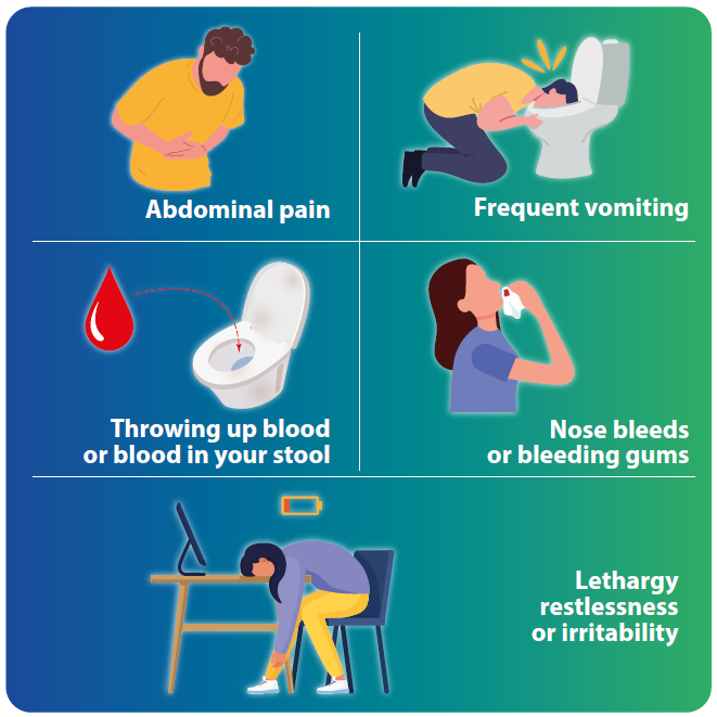DHF can cause critical complications, including bleeding and organ impairment. This condition is likely to occur between 24 to 48 hours after the fever subsides, making timely medical intervention crucial. Warning signs include: